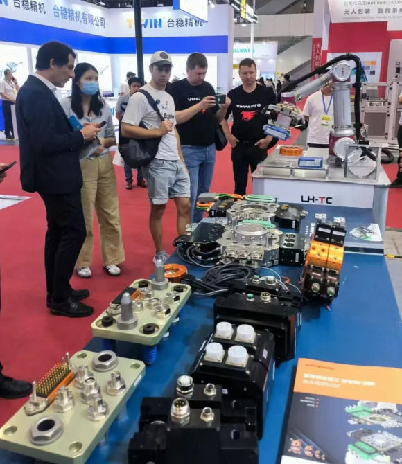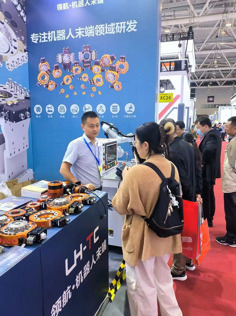На стенде LH-TC рабочая станция с устройством быстрой смены инструментов привлекла большое внимание: за считанные секунды она точно переключает различные инструменты — от разных захватов для манипулирования до инструментов для шлифования, обеспечивая плавную и эффективную работу всего процесса.